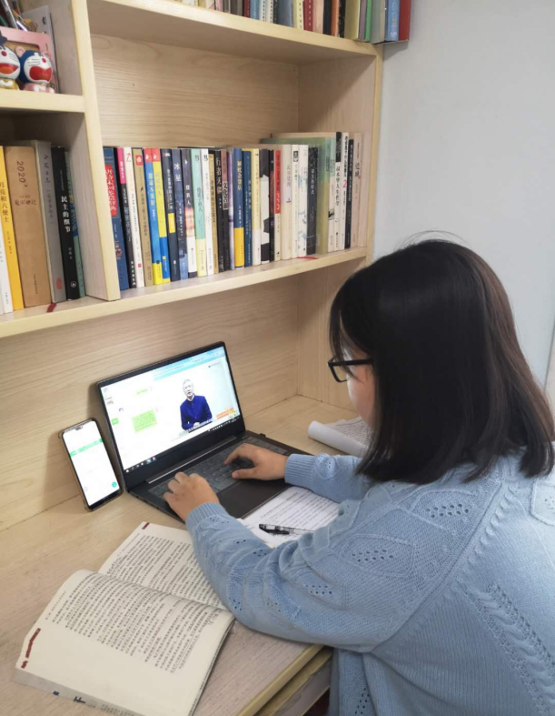 邸娟老师全程掌控课程进度,与同学们进行教学互动和交流,跟踪同学们的学习数据,及时为同学们查缺补漏,确保教学环节的流畅。通过收看线上专家的公开课,让同学们与专家碰撞思想的火花,更新同学们的认知方式,提高其精神境界。