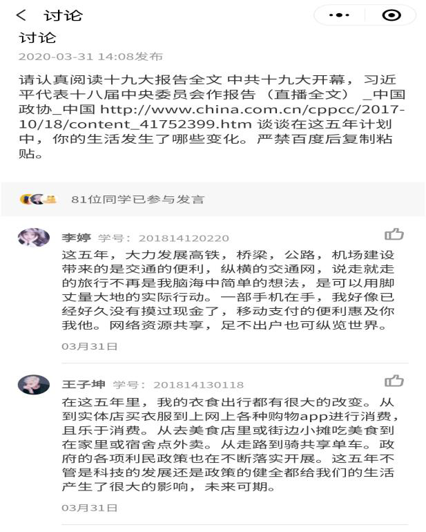 “学生+教师+线上专家”三位一体的教学组合,有效建立了“师生学习共同体”,有助于提高同学们在线学习的效率。根据目前同学们的反馈,学习效果良好,线上教学成效已经初步显现。
