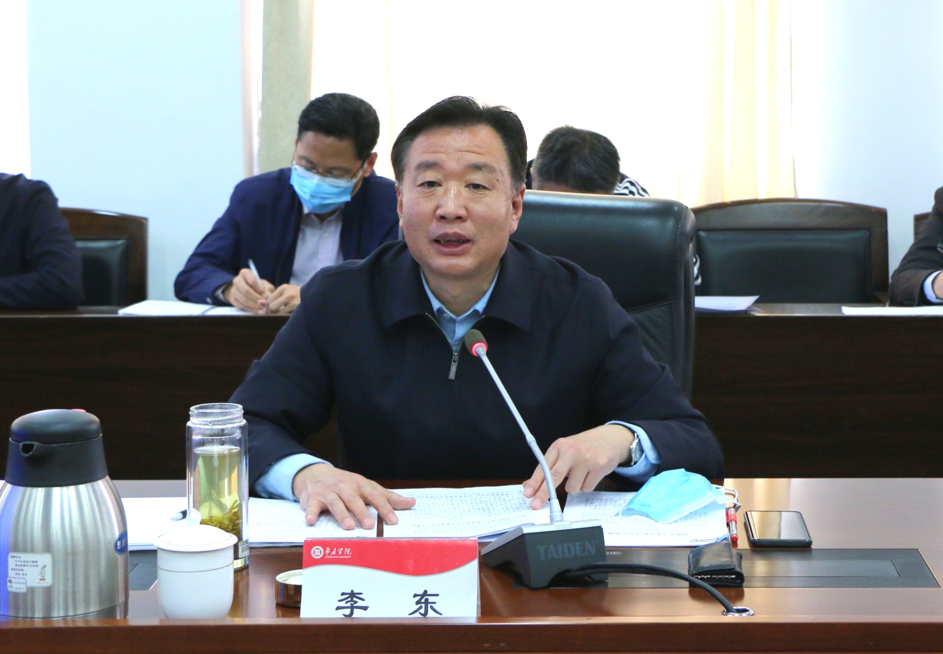 4月29日上午,我校在综合楼三楼会议室召开2020年重点工作攻坚突破部署会议。校党委书记曹胜强讲话,校领导李东、曾宪明、明清河、李目海、李丽清、路绪剑出席会议。全校各部门、学院主要负责人参加会议。会议由校长李东主持。
