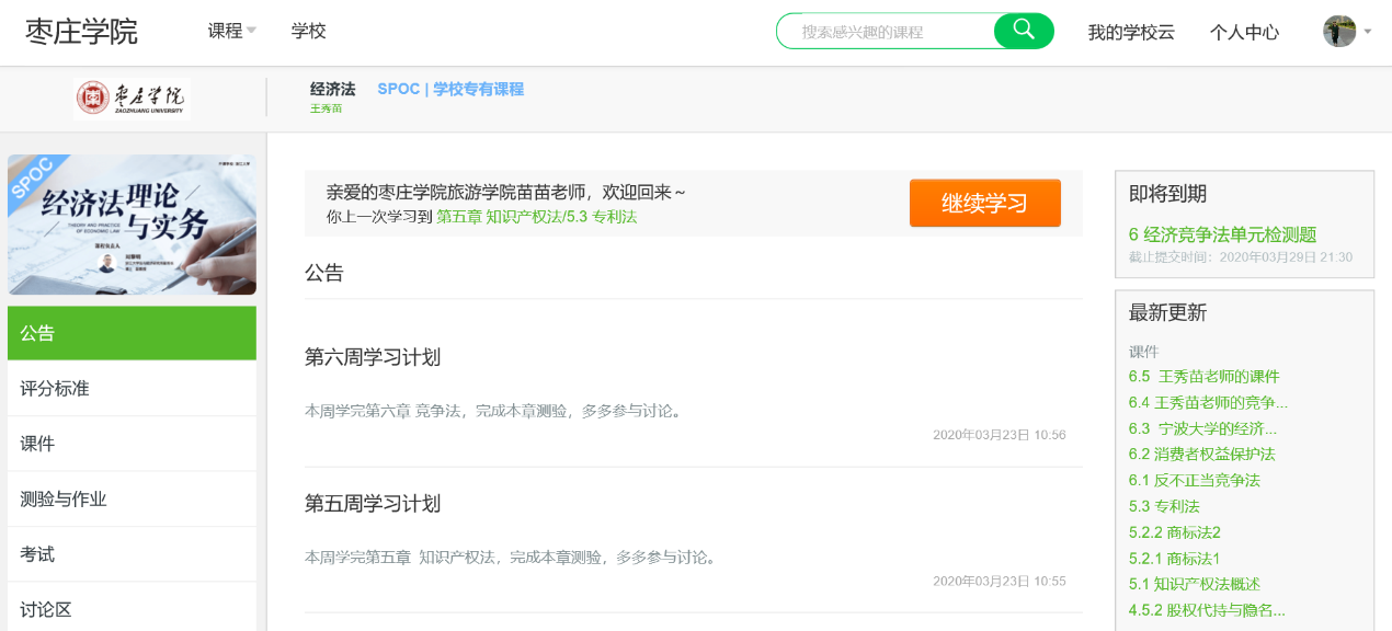 第一,依托优质的教学资源——浙江大学的《经济法理论与实务》课程的视频库,王秀苗老师在中国大学MOOC平台上建立了DB中国旗舰官方网站的异步SPOC《经济法》课程。