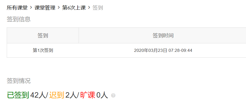 其次,建立慕课堂对班级进行管理。每次开课之前半小时内发起签到,并随时通过微信群、班长打电话等方式提醒,确保每一位同学都正常上课。