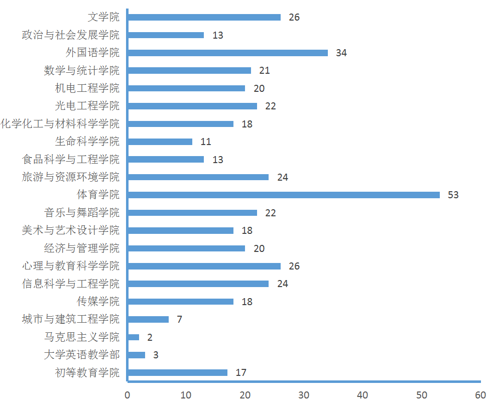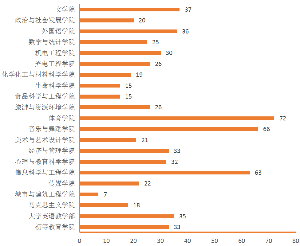 图4.各院(部)4月16日线上授课教师数(人次)分布图