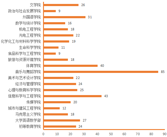 图4.各院(部)4月8日线上授课教师数(人次)分布图