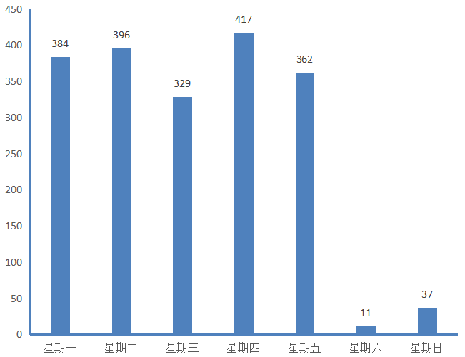 图2. 3月30日-4月5日期间课程数(门次)分布图