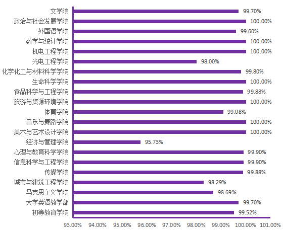 各院(部)的开课数、开课门次、班级数、教师数(人次)、学生数(人次)和学生上课率情况如下图所示: