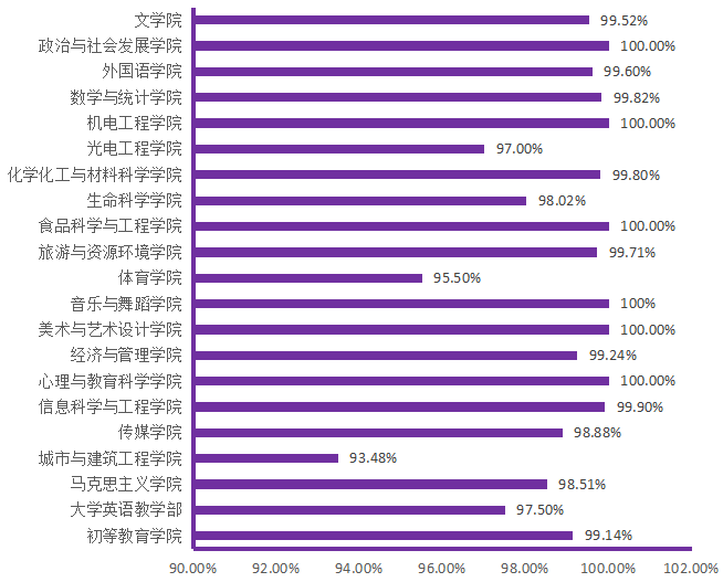 各院(部)的开课数、开课门次、班级数、教师数(人次)、学生数(人次)和学生上课率情况如下图所示: