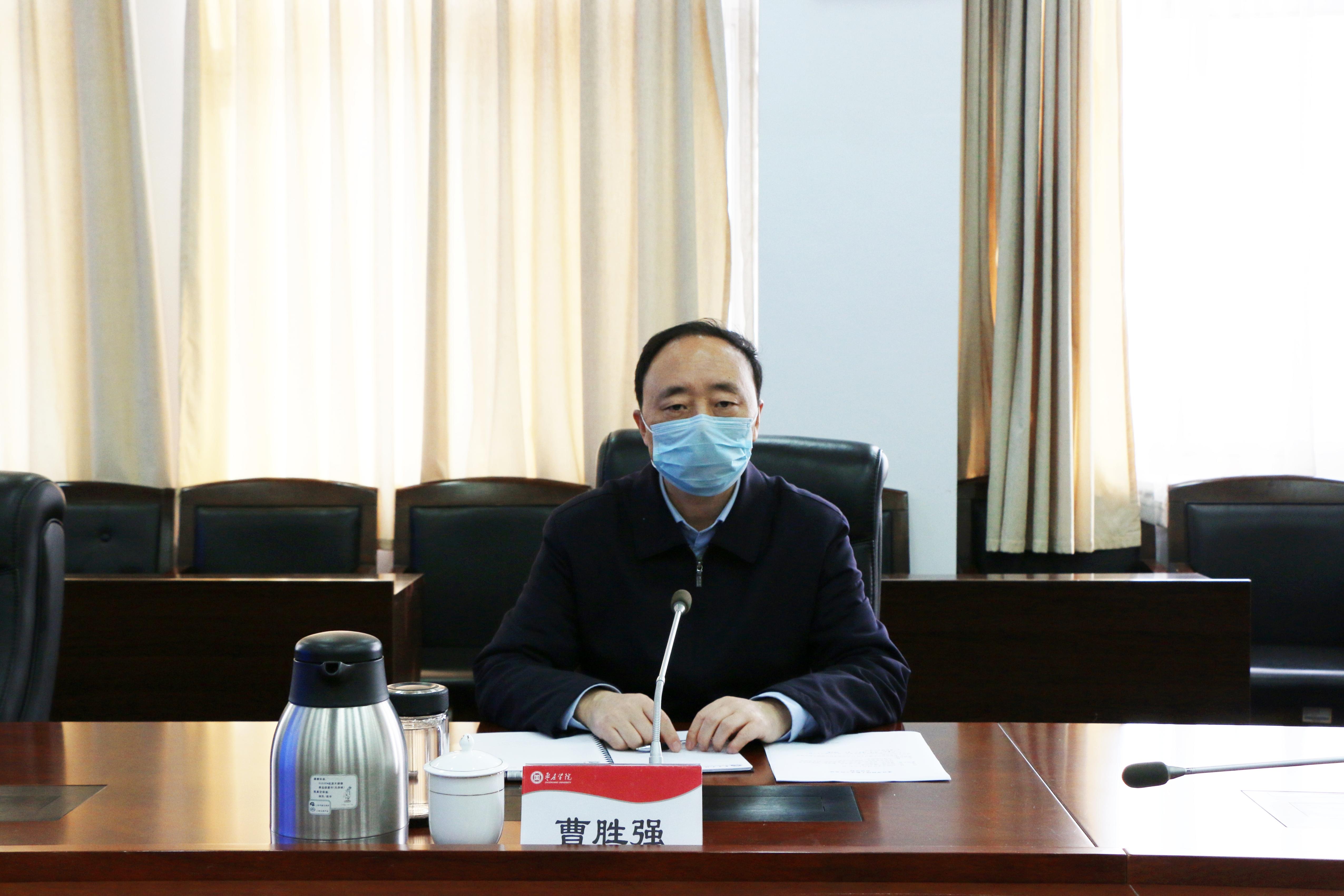 3月13日下午,我校在综合楼三楼会议室召开线上教学工作会议。校党委书记曹胜强出席会议并讲话,对做好下一步线上教学和开学前准备工作提出指导意见。学校相关部门和教学院部负责人参加会议,副校长明清河主持会议。