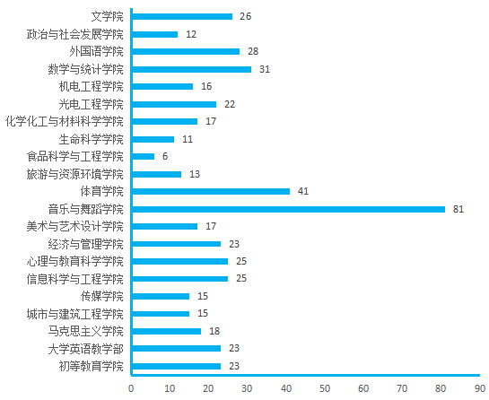 图4.各院(部)3月4日线上授课教师数(人次)分布图