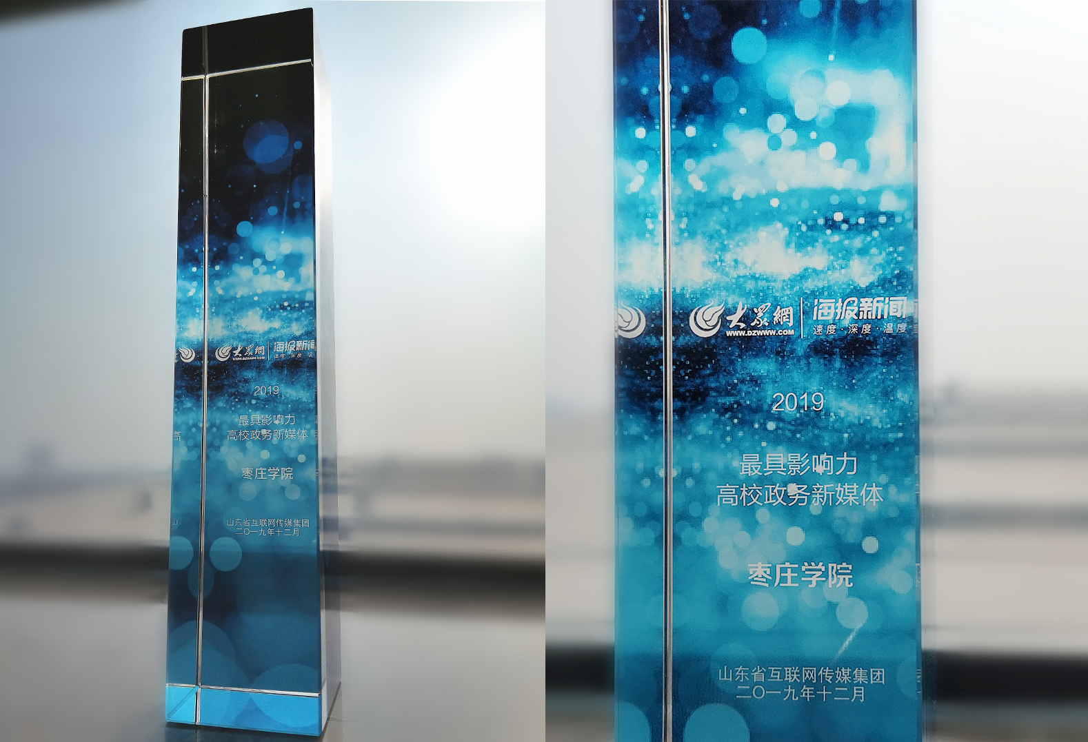 12月20日,由山东省互联网传媒集团主办的山东高校品牌建设与传播管理研讨会暨2019山东最佳社会声誉高校颁奖仪式在临沂大学举行,我校荣获“2019年度山东最具影响力高校政务新媒体”称号。山东省教育厅(省委教育工委)办公室调研员、新闻中心主任宋全政,省网媒集团党委常委、副总经理姜长勇为获奖单位颁奖。全省108所院校的代表参加颁奖活动。