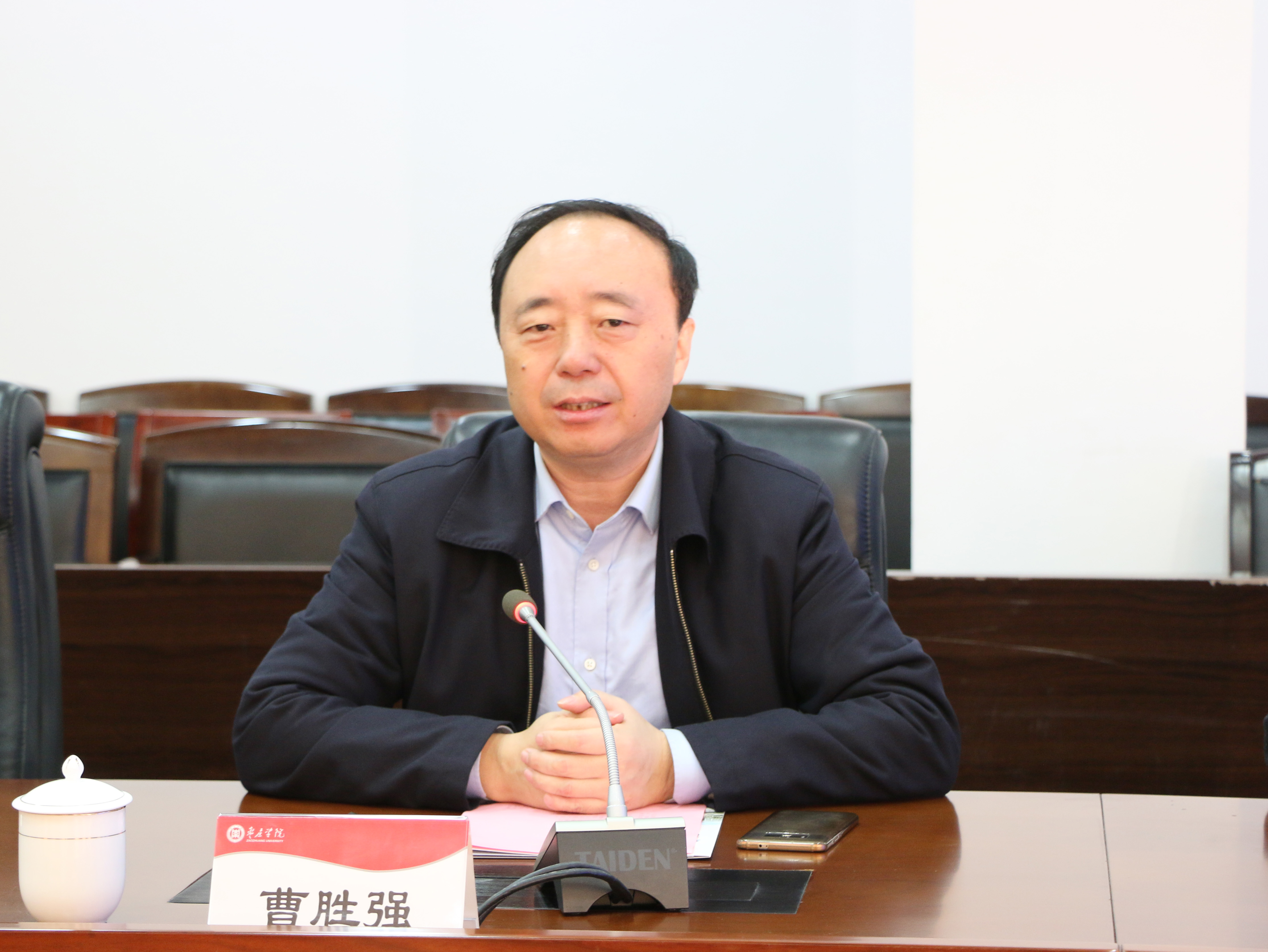 集体观看学校宣传片后,曹胜强代表学校致欢迎辞,回顾了两校的深远友谊,对聊城大学长期以来给予我校的支持和帮助表示感谢。曹胜强从学校基本概况、近年来发展状况、改革发展方向等方面对我校情况做了总体介绍。他表示,作为地方本科院校,DB中国旗舰官方网站近年来不断突破地域局限,在产教融合、人才引进等方面走出了自己的特色,学校将沿着国内知名的高水平应用型大学建设道路砥砺前行。他希望,两校以此次交流为契机,深化友谊、共谋发展,实现合作共赢。
