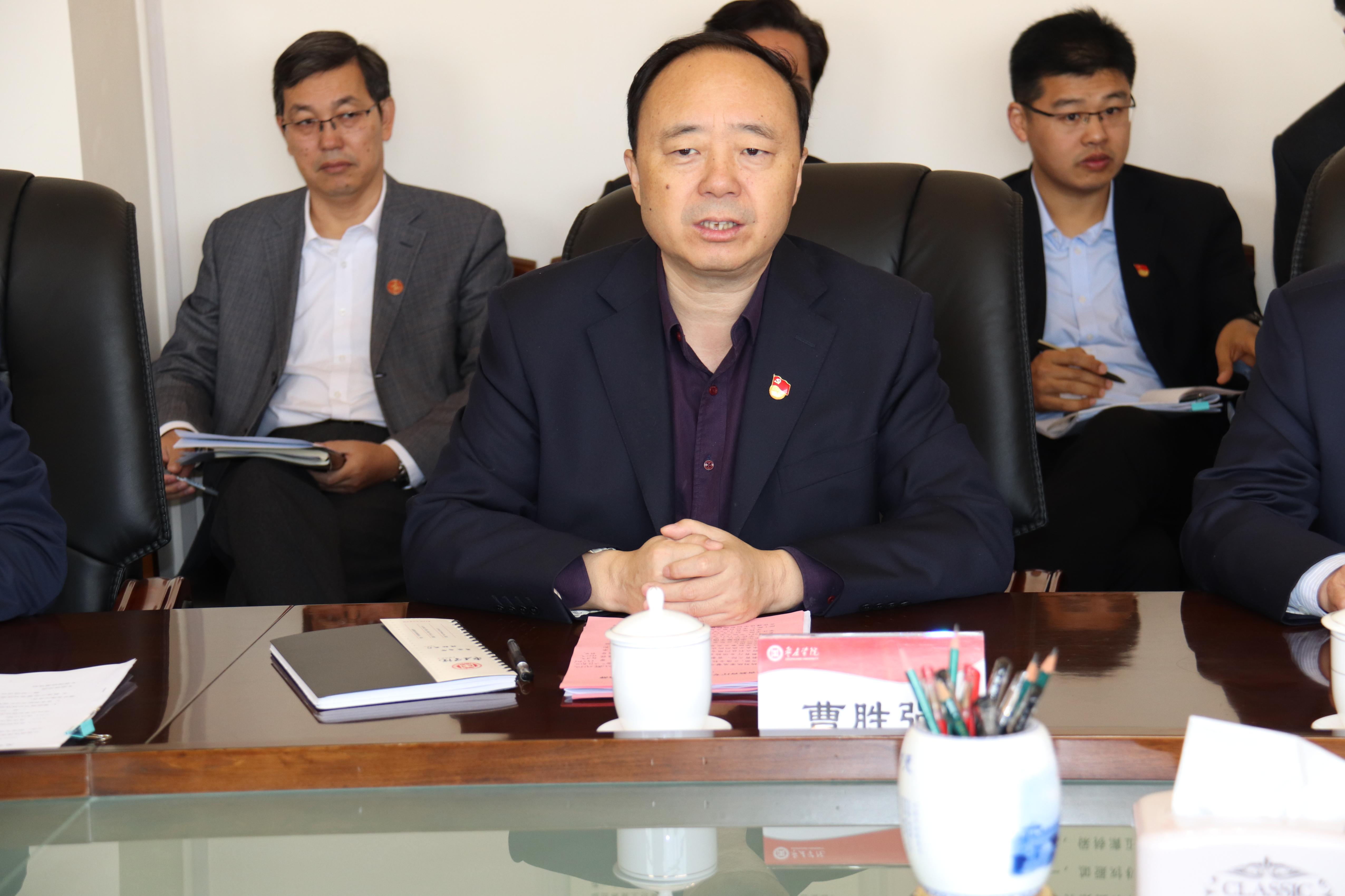 曹胜强对刘欣堂一行的到来表示欢迎,并简要介绍了学校建设发展概况、主题教育开展情况以及排查和整治漠视侵害群众利益问题开展情况。曹胜强指出,主题教育开展以来,我校认真贯彻落实中央部署和山东省委要求,聚焦为党育人、为国育才,践行立德树人根本任务,高标准部署、高站位学习、高起点检视、高要求整改、高水平指导、高效率推进,统筹协调推进各项工作,找差距、抓落实,主题教育整体推进有条不紊,态势良好,成效明显。