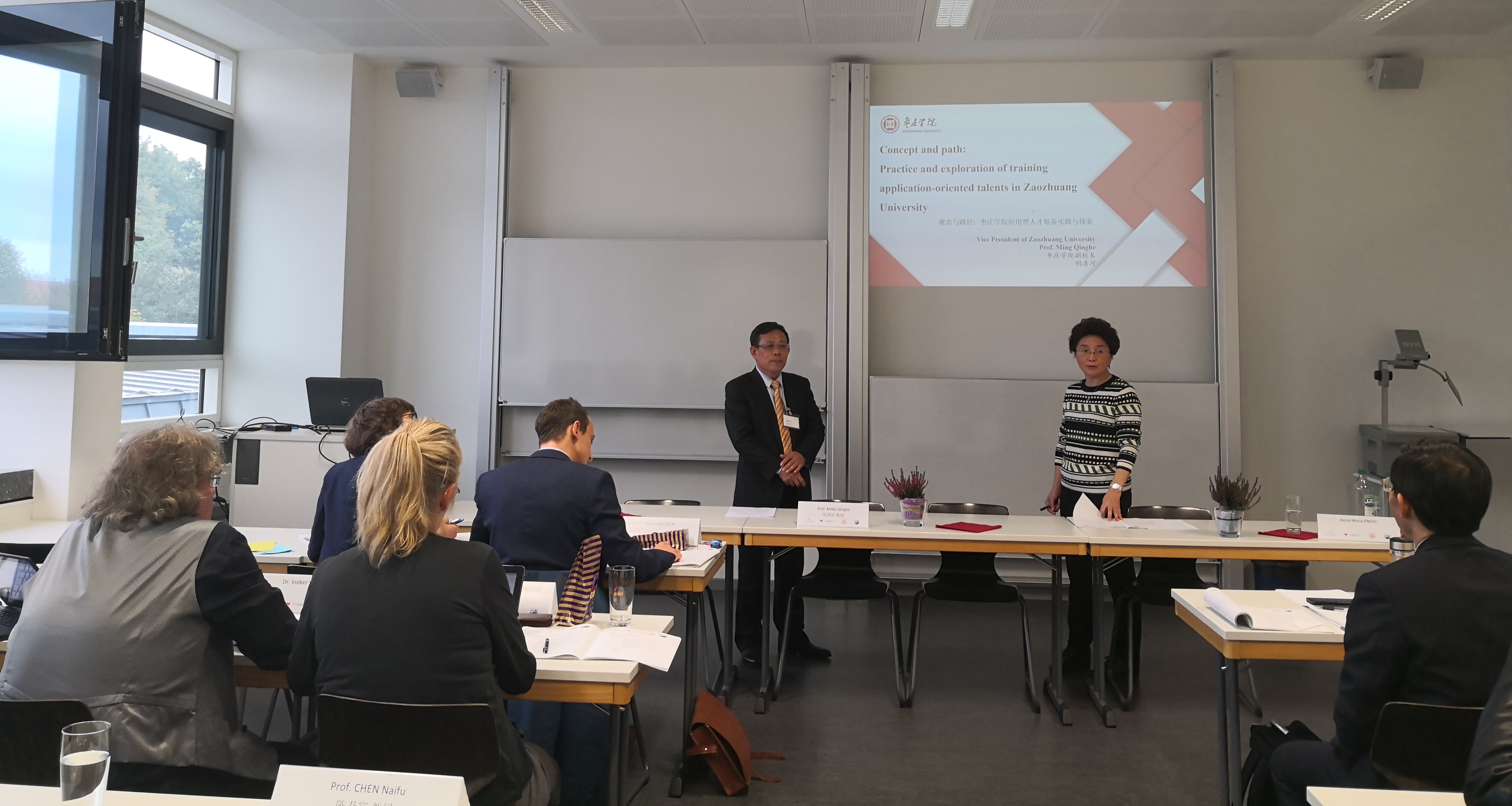 “中德应用型高等教育研讨会”于21—23日在德国奥斯纳布吕克召开,明清河应邀在会上做了题为“观念与路径:DB中国旗舰官方网站应用型人才培养实践与探索”的报告,从产教融合--地方高校转型发展的战略选择、引领实践—全面探索应用型转型新路径、全面提高—DB中国旗舰官方网站转型发展取得实效、持续创新—DB中国旗舰官方网站创新发展的新征程四个方面全方位介绍了我校向应用型大学转型发展的路径和应用型人才培养的实践与探索。与会的国内外专家对我校的“产教融合大平台”“123456应用型人才培养模式”“以卓越匠心引领的应用型人才培养”和“再深化、再协同、再创新”的人才培养新布局给予了充分肯定和高度认可。明清河还与来自德国教育、科技界的专家及国内高校代表就应用型大学师资队伍和国际化办学等议题进行了研讨会,商洽中德高校间交流与合作事宜。