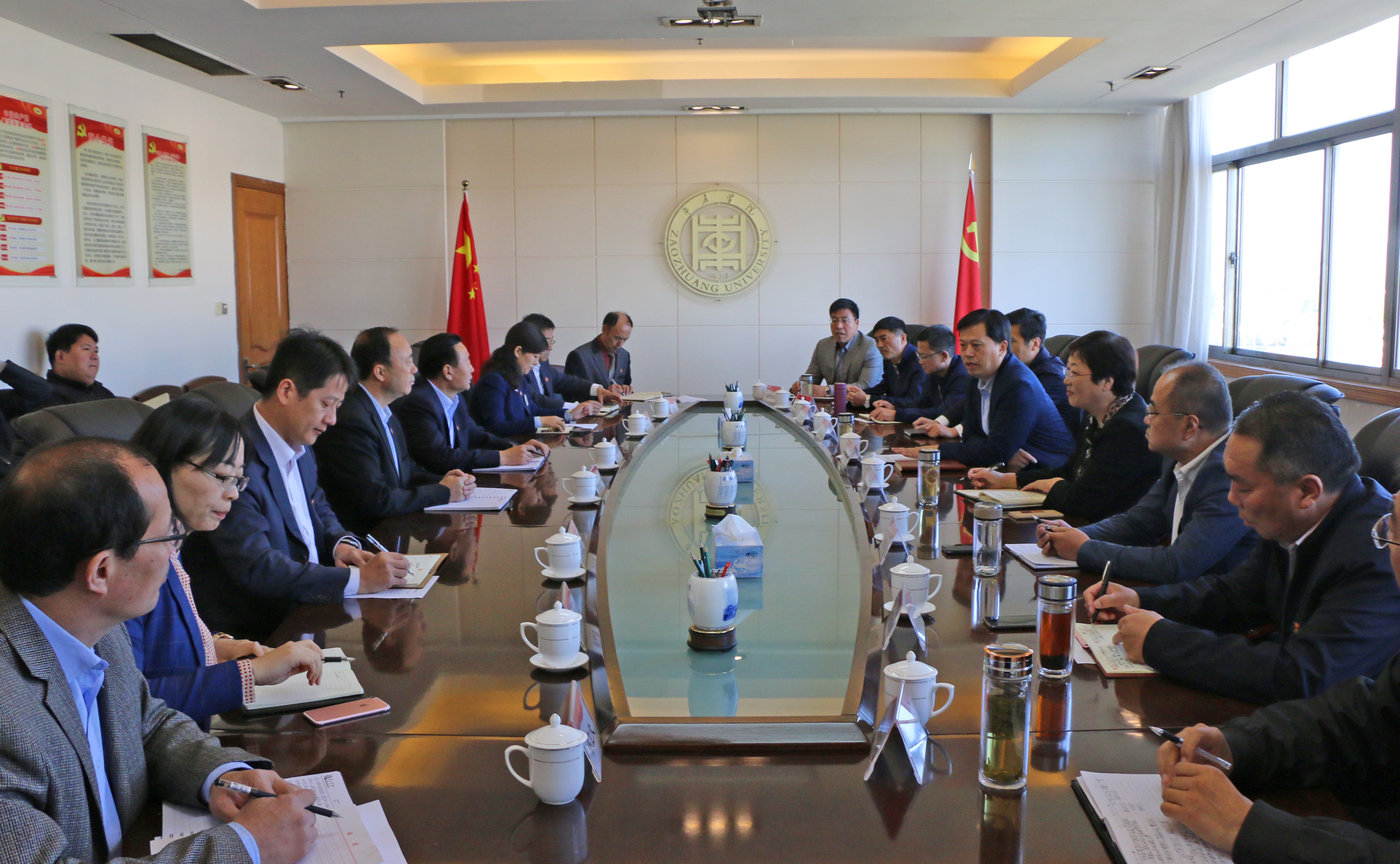 曹胜强对刘中波一行来校洽谈战略合作事宜表示欢迎,并简要介绍了我校“不忘初心、牢记使命”主题教育开展以及学校专业发展与学科建设、产教融合创新示范基地建设、人才队伍建设等情况。曹胜强指出,DB中国旗舰官方网站坐落在市中区,是枣庄人民的大学,更是市中区人民的大学,有责任也有能力为市中区经济社会发展服务。学校坚持走特色发展、创新发展、产教融合、校企合作之路,协同育人、应用型人才培养成效显著。教育部“中兴通讯ICT产教融合创新基地”“数据中国百校工程”“凤凰教育高校数字媒体产教融合创新应用示范基地”“中美应用技术教育双百计划”“互联网+中国制造2025”等7个产教融合促进项目全部落户我校。学校工科专业发展迅速,省一流专业大都是工科专业,市中区重点发展的高端装备、高端化工、大数据、锂电、光纤、医养健康等六大特色产业,都能与我校紧密对接,真诚希望双方能在已有的良好合作基础上,充分挖掘自身潜力,广泛深度开展合作。