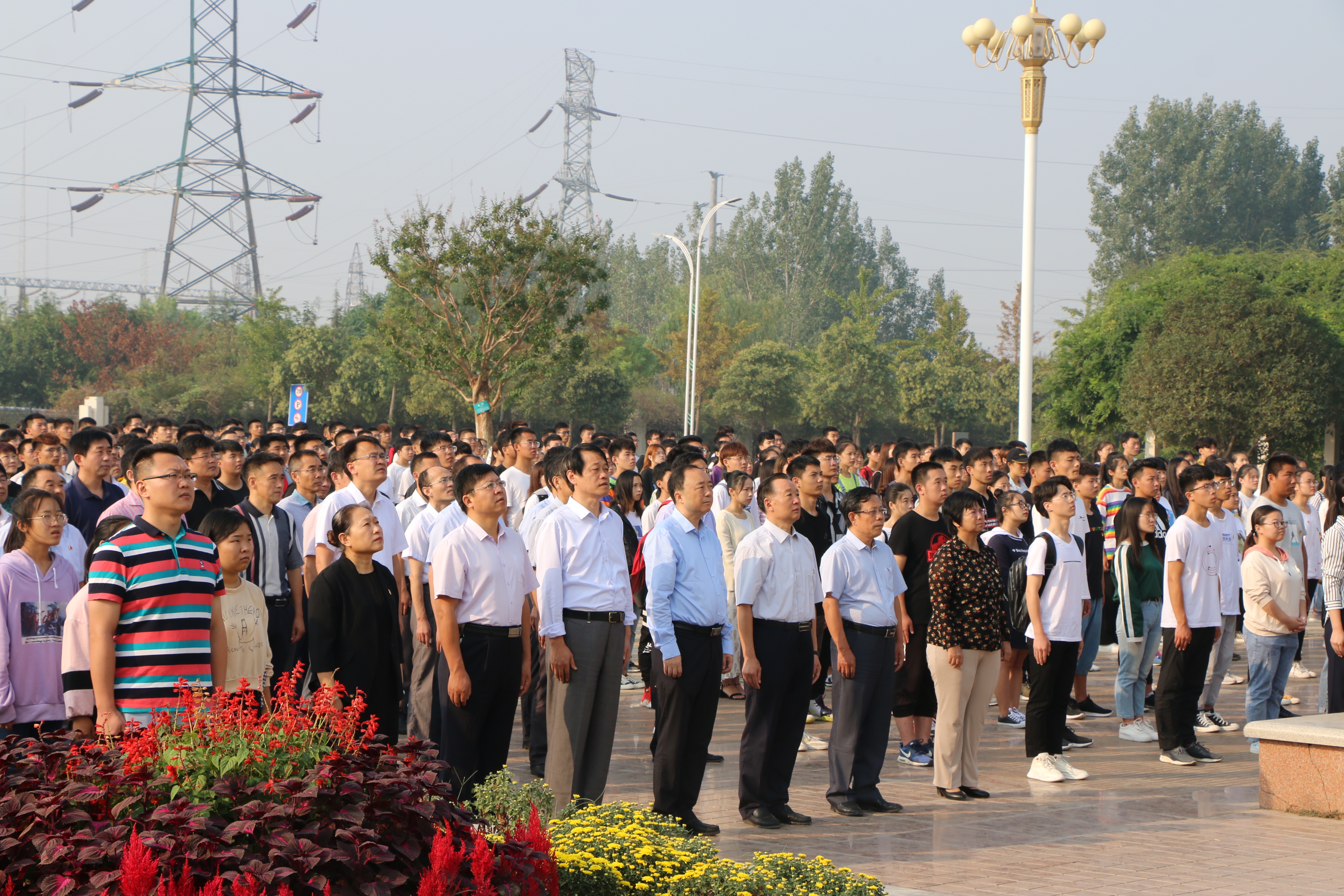 为迎接中华人民共和国成立70周年,9月30日上午,我校在综合楼广场举行升国旗仪式,校领导曹胜强、李东、曾宪明、明清河、李目海、韩素玲、李丽清及学校处级以上干部和千余名师生代表参加了升旗仪式。