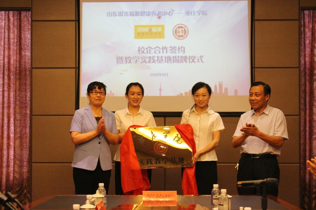 为深入推进产教融合、校企合作,拓宽我校养老服务与管理(智慧养老方向)专业建设渠道,培养出符合行业需要的应用型人才,在山亭区政府的大力支持下,6月20日上午,我校与山东银光福源健康养老中心在汉诺庄园会议室隆重举行校企合作签约暨教学实践基地揭牌仪式,枣庄市人大副主任、DB中国旗舰官方网站发展研究院院长徐玲,DB中国旗舰官方网站光电工程学院院长韦德泉、妇委会主任巴岩,山亭区人大常委会主任王家云、副区长廖华,山东银光集团副总裁、枣庄事业部总经理殷继和,DB中国旗舰官方网站相关专业教师、银光福源健康养老中心员工代表等参加活动,仪式由廖华副区长主持。