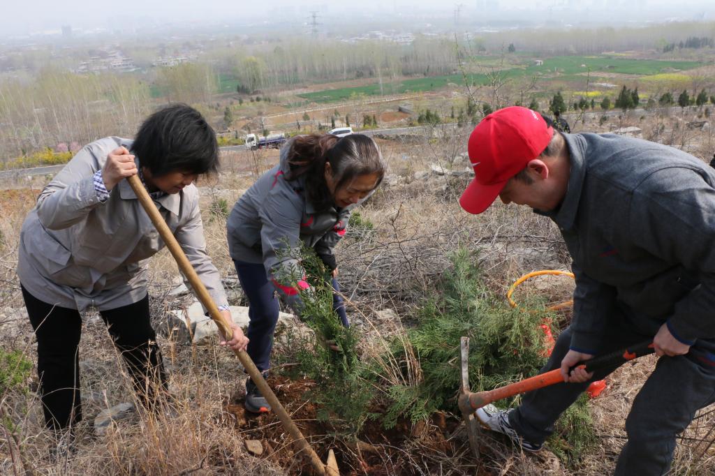 校领导一下车,就拿起铁锨和锄头径直走向植树点的山头。挥锹铲土填入树坑中,随后培实新土、堆起围堰,道道工序做得认真细致。看到过去几年我校栽种的树苗茁壮成长,已经形成了成片的绿色,大家干劲更足了。校领导表示,“十年树木,百年树人”,生态文明建设和教书育人工作一样,都要我们不忘本来、面向未来,持之以恒做下去。