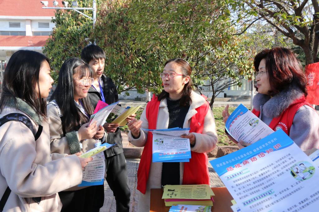 为进一步提高师生对结核病危害性的认识,3月22日上午,在第24个“世界防治结核病日”到来之际,学校在小广场组织开展了以“开展终结结核病行动,共建共享健康中国”为主题的世界防治结核病日宣传活动。副校长李目海参加宣传活动并致辞,后勤服务处处长宋博主持仪式,枣庄市中区疾控中心结防科科长薛锋及宣传部、学生处、团委、工会、保卫处、后勤处等部门负责人参加了活动。