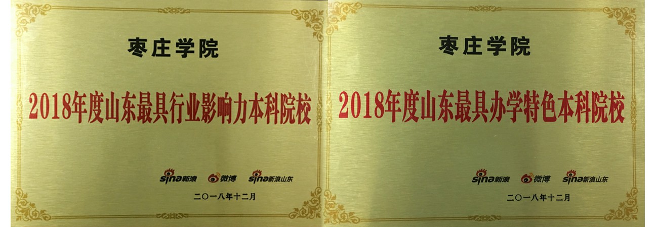 新浪网、微博、新浪山东于2018年末联合推出“2018年度山东教育盛典:四十年之变——执教育之笔 绘奋进蓝图”,回顾山东教育年度热点、展望教育发展趋势,同时揭晓年度教育领域荣耀榜单。我校荣获“2018年度山东最具行业影响力本科院校”“2018年度山东最具办学特色本科院校”两项殊荣。至此,我校连续三年获得“山东最具办学特色本科院校”称号,同时首次获评分量更重的“山东最具行业影响力本科院校”,这是学校办学实力和水平进一步提升的重要标志。