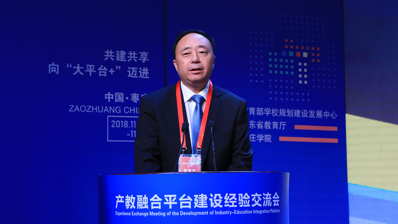 11月16日上午,2018产教融合平台建设经验交流会在枣庄开幕。校党委书记曹胜强出席开幕式并致辞。