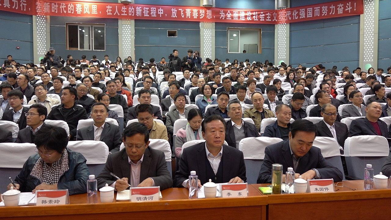 11月1日上午,枣庄市委书记李峰莅临我校做题为《加快实施新旧动能转换重大工程 全力推动资源型城市创新转型发展》的形势政策报告,校党委书记曹胜强主持报告会,枣庄市委秘书长朱国伟、市委政策研究室主任刘宗国,校领导李东、曾宪明、明清河、李目海、韩素玲、李丽清及全校副科级以上干部、教授、理工科博士教师和学生代表共400余人在综合楼学术报告厅聆听了报告会。