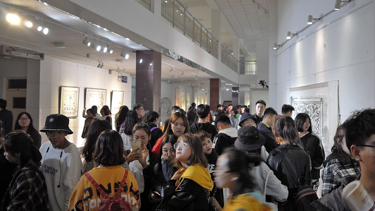 开幕式结束后,各位领导、专家及师生进入展厅,参观作品展览,并观摩和动手体验汉画像石拓片的制作工艺过程。