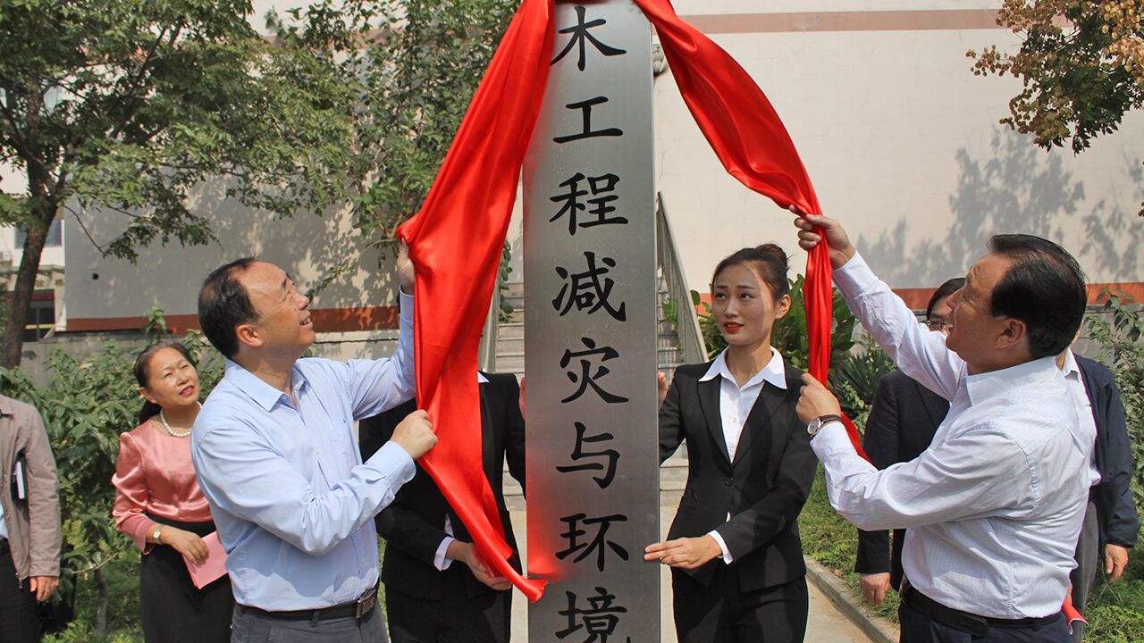 曹胜强和李东共同为土木工程减灾与环境修复团队揭牌。