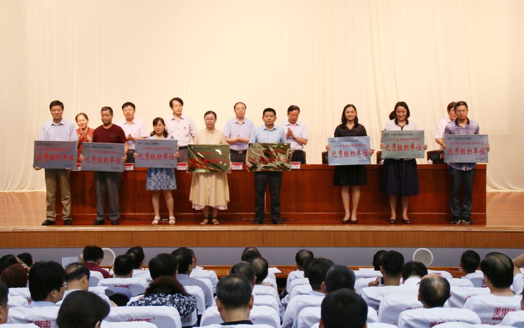 党委副书记曾宪明宣读了学校表彰决定。化学化工与材料科学学院、生命科学学院、数学与统计学院获得我校2016年科研先进单位称号;信息科学院与工程学院、光电工程学院、化学化工与材料科学学院获得我校2017年科研先进单位称号。数学与统计学院、生命科学学院、化学化工与材料科学学院获得2016年国家级科研项目优秀组织单位称号,文学院、政治与社会发展学院、马克思主义学院等九个学院获得2016年省部级科研项目优秀组织单位称号。
