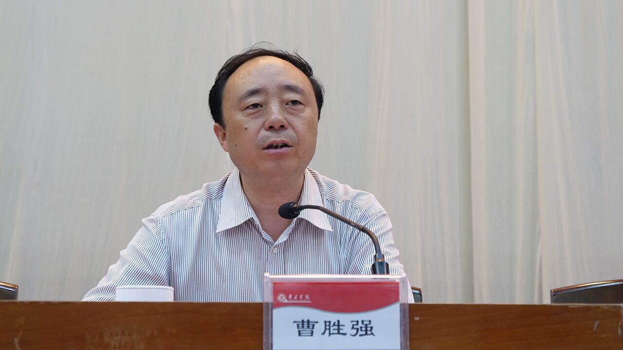 曹胜强在讲话中指出,要充分认识硕士学位授予单位立项建设工作对学校事业发展的重要性,当做头等大事、重中之重抓紧、抓实、抓牢、抓好。硕士学位授予单位立项建设工作,机遇难得,时间紧迫,任务艰巨。我们应清醒地看到差距还很大,甚至是全方位的,但必须举全校之力,奋力拼搏。我们能否实现目标,关键看我们有没有啃硬骨头的韧劲,有没有打硬仗的本领,有没有钉钉子的精神,有没有追求梦想的执着。