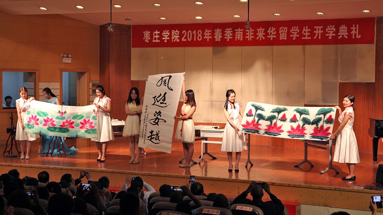 5月9日下午,2018年春季南非留学生开学典礼在我校音乐楼报告厅隆重举行。来自南非的50名留学生新生齐聚一堂,共同开启在我校留学生活的新篇章。校党委书记曹胜强、校长李东、副校长明清河出席开学典礼,市出入境管理局副局长司勇、枣庄润恒光能集团人力行政总监刘永应邀出席。出席开学典礼的还有学校相关部门和学院的负责人及光电工程学院的师生,开学典礼由校长李东主持。