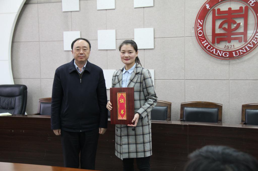 曹胜强书记为女生教育工作组徽章设计者颁发了证书,对女生教育工作组给予了充分肯定,鼓励工作组把女生教育当做一项重要的事业来做,要有信心做得更好,并通过多种宣传渠道,将工作组的好经验好成果推广宣传出去。