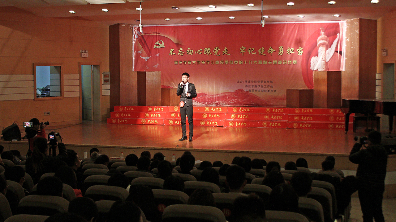 比赛现场,来自各二级学院的16名选手用生动的语言、真挚的情感,或平淡中透露出真实,或激昂中显露出真情,或高亢中体现出奋进,将对十九大精神和对新时代的期待通过演讲表现得淋漓尽致,诠释了青年学子对以习近平同志为核心的党中央的拥护和对党的忠诚,表达了永远跟党走的坚定决心。经过激烈的角逐,政治与社会发展学院任书瑞、蒋璟,城市与建筑工程学院李姿曈,生命科学学院于湘钒,文学院姜怡帆获得一等奖,心理与教育科学学院李晨晨等11人获得二等奖,美术与艺术设计学院宗兆华等15名同学获得三等奖,获奖选手赢得全场满堂喝彩。