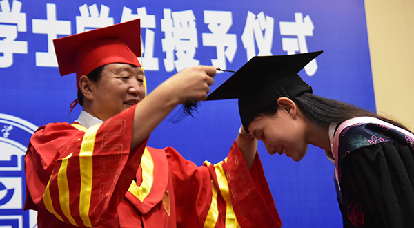 6月29日上午,我校隆重举行2017届毕业典礼,为圆满完成学业的4381名毕业生送行。校领导曹胜强、李东、曾宪明、李进京、明清河、李目海、韩素玲,各学院、各部门负责人,教师、毕业生代表参加了典礼。仪式由校党委副书记曾宪明主持。