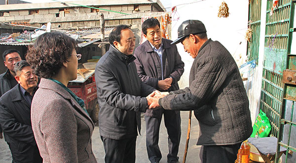 在春节来临之际,1月12日,校领导曹胜强、曾宪明、李进京、明清河、韩素玲在校党委组织部有关人员的陪同下,分三组到我校派驻“第一书记”帮扶村走访慰问困难群众,并为困难户送去了米、面、食用油等过节物品。山亭区委书记毕志伟接待了曹校长一行并陪同走访。