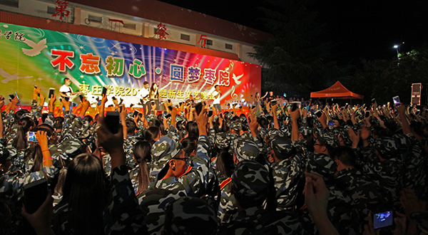 9月19日晚,我校2016年迎新生文艺晚会在小广场举行。校领导胡小林、曾宪明、李目海、韩素玲,中国移动枣庄分公司总经理周玉海、各学院负责人及2016级全体新生共同观看了晚会。