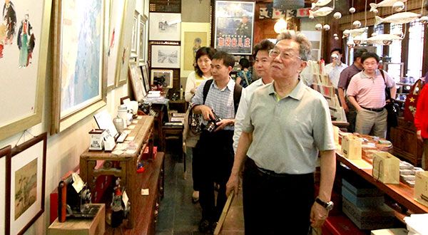 在世界语博物馆,王蒙详细了解世界语的产生、发展以及对世界文化交流的意义。在“聆听世界语”前,他仔细听世界语的发音。当他看到展板上有一张他在1987年考察世界语活动的照片时,很高兴,并深有感触地说:“当时多年轻呀”。王蒙一行还参观了我校建在台儿庄古城的“海峡两岸艺术交流馆”和“大学生艺术实践基地”。