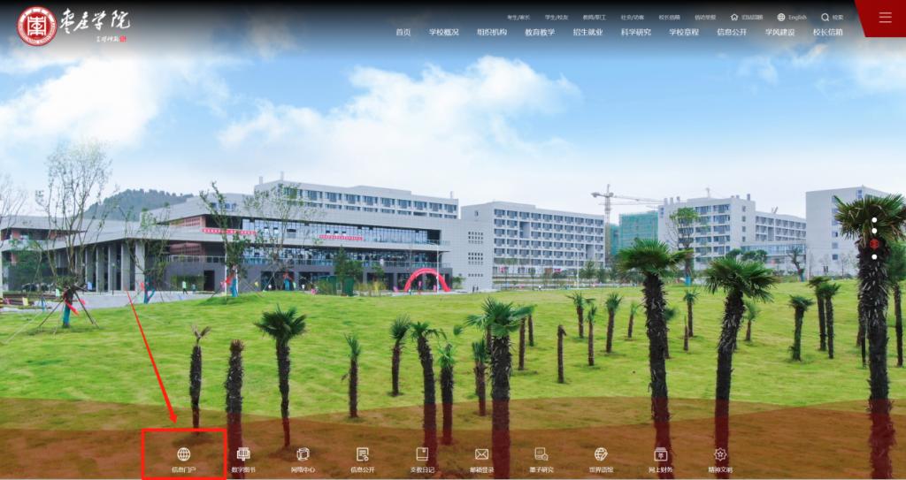 打开浏览器,在学校的官网banner图下方点击“信息门户”,或者输入网址: