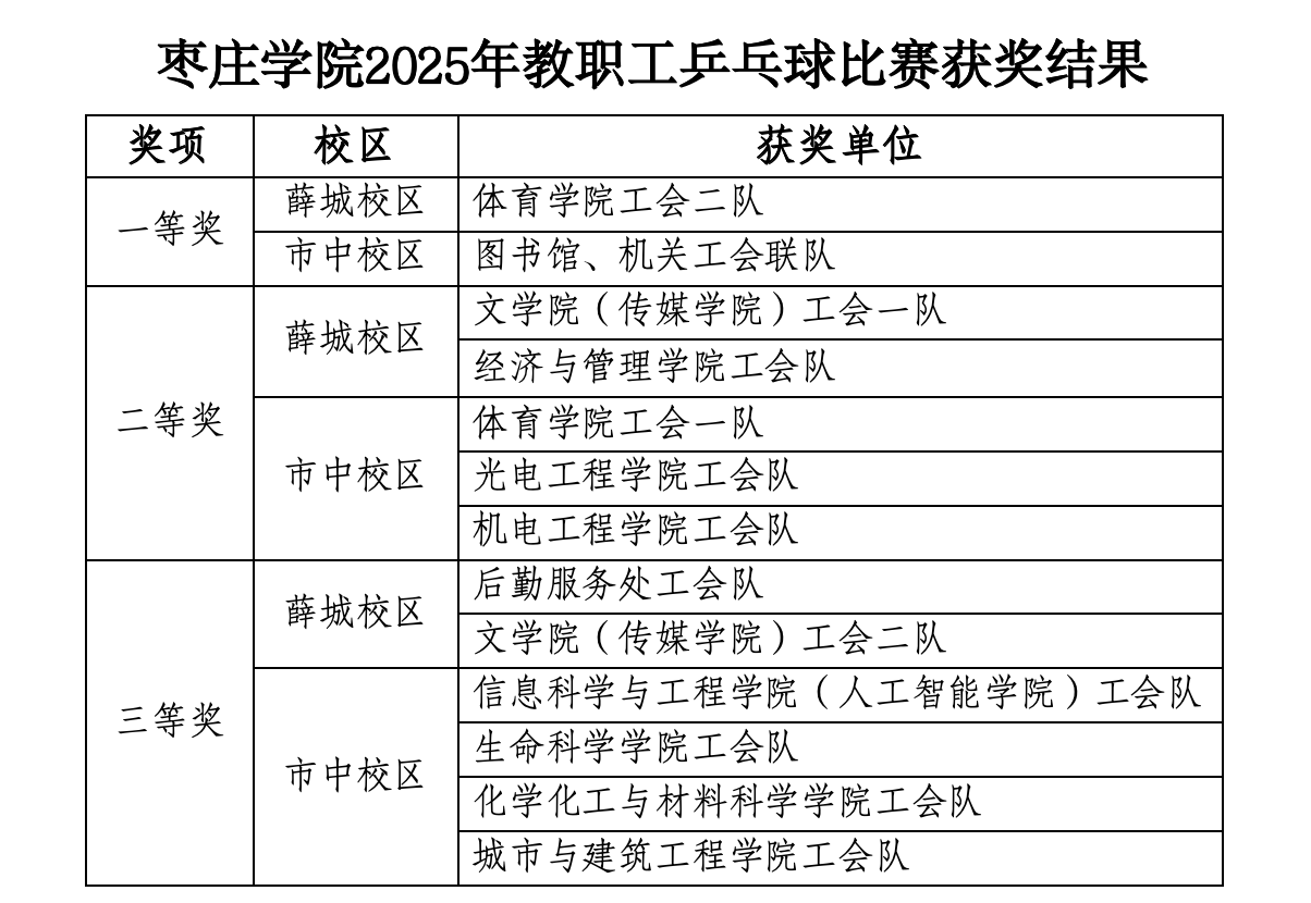 关于DB中国旗舰官方网站2025年教职工乒乓球比赛获奖结果的通报