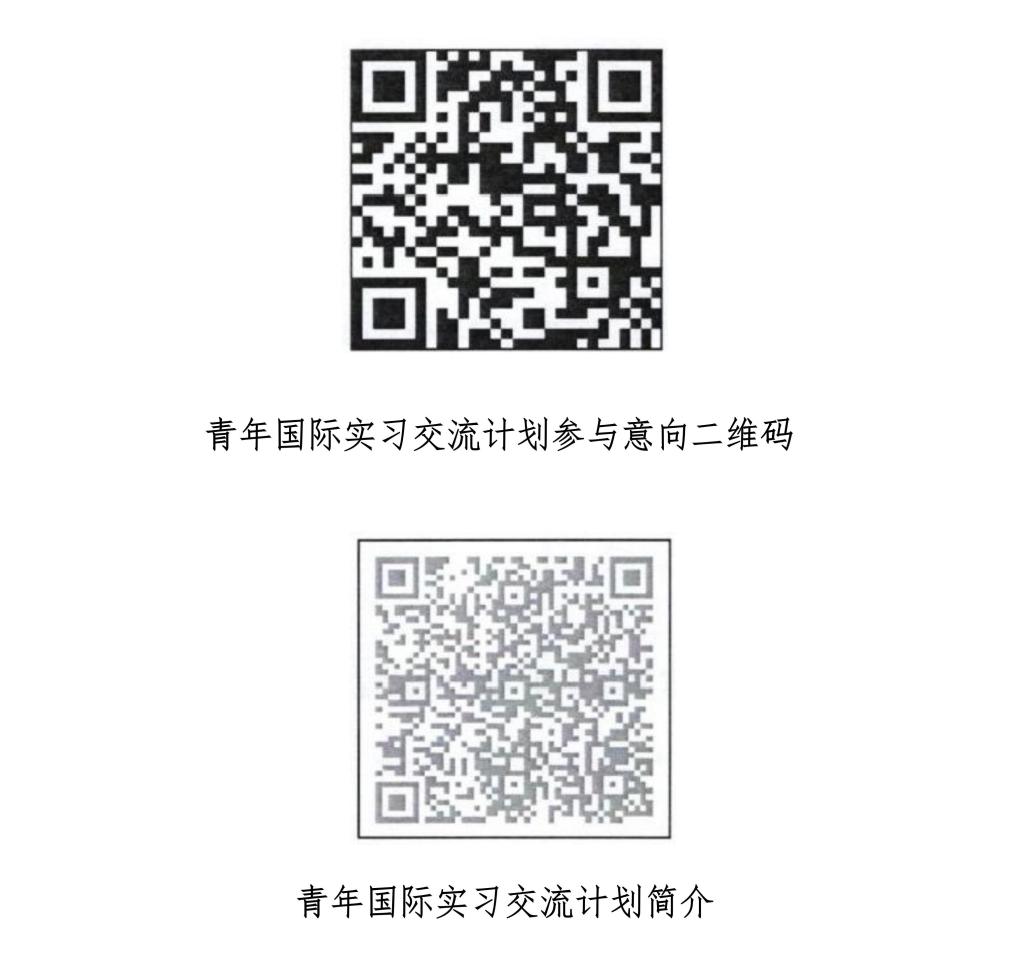 征集学生参加青年国际实习交流计划的意向信息。请有意愿的学生于11月30日前扫码线上填写《青年国际实习交流计划参与意向》。