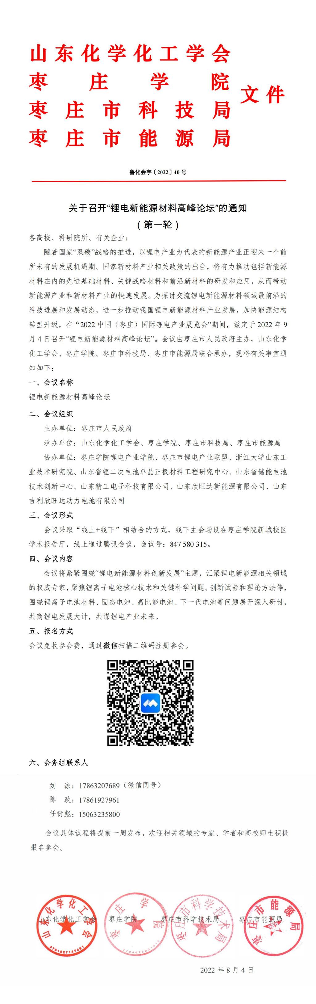 关于召开“锂电新能源材料高峰论坛”的通知 (第一轮)