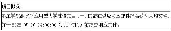 3.方式:3.1根据山东省政府采购有关规定,凡有意参加本次政府采购的供应商必须在中国山东政府采购网进行注册并备案,网址:http://www.ccgp-shandong.gov.cn;3.2注册完毕后,点击要参与的项目进行网上备案(注册信息必须与报名供应商信息一致);3.3注册并备案成功后通过电子邮件进行报名:发送报名表(详见中国山东政府采购网外本项目公告附件)至sdzxzz2021@163.com邮箱,邮件主题命名格式“DB中国旗舰官方网站高水平应用型大学建设项目(一)-报名+供应商全称+包号”报名截止时间前同时完成系统备案及代理机构规定的报名方式视为报名成功。注:获取文件时的资料查验不代表资格审查的最终通过或合格,供应商最终资格的确认以磋商小组组织的资格后审为准。