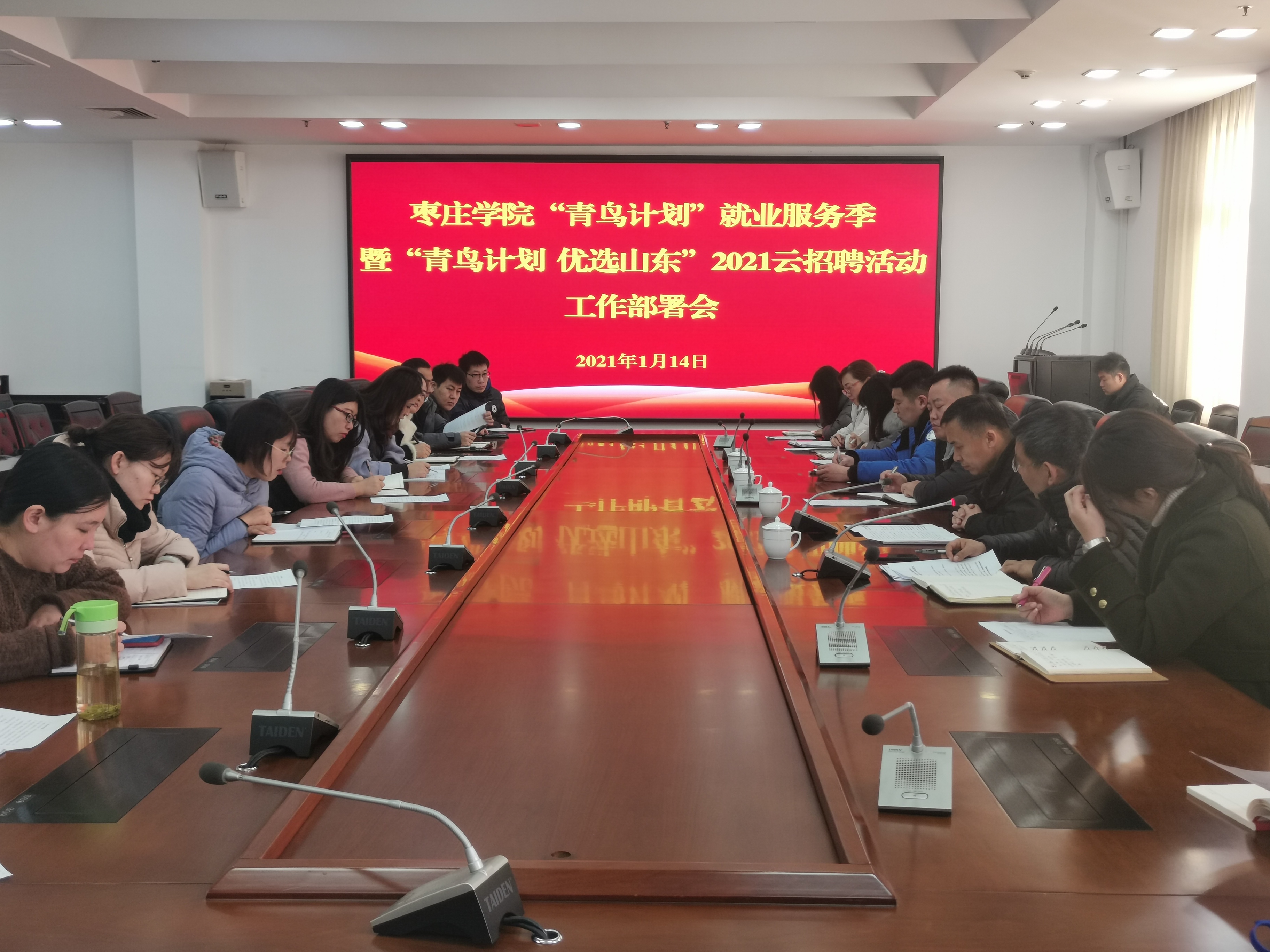 为贯彻落实团省委“青鸟计划”就业服务季暨“青鸟计划 优选山东”2021云招聘活动工作要求,助力毕业生就业创业工作,1月14日,校团委于综合楼三楼会议室召开专项工作部署会,二级学院团总支负责人参加会议。