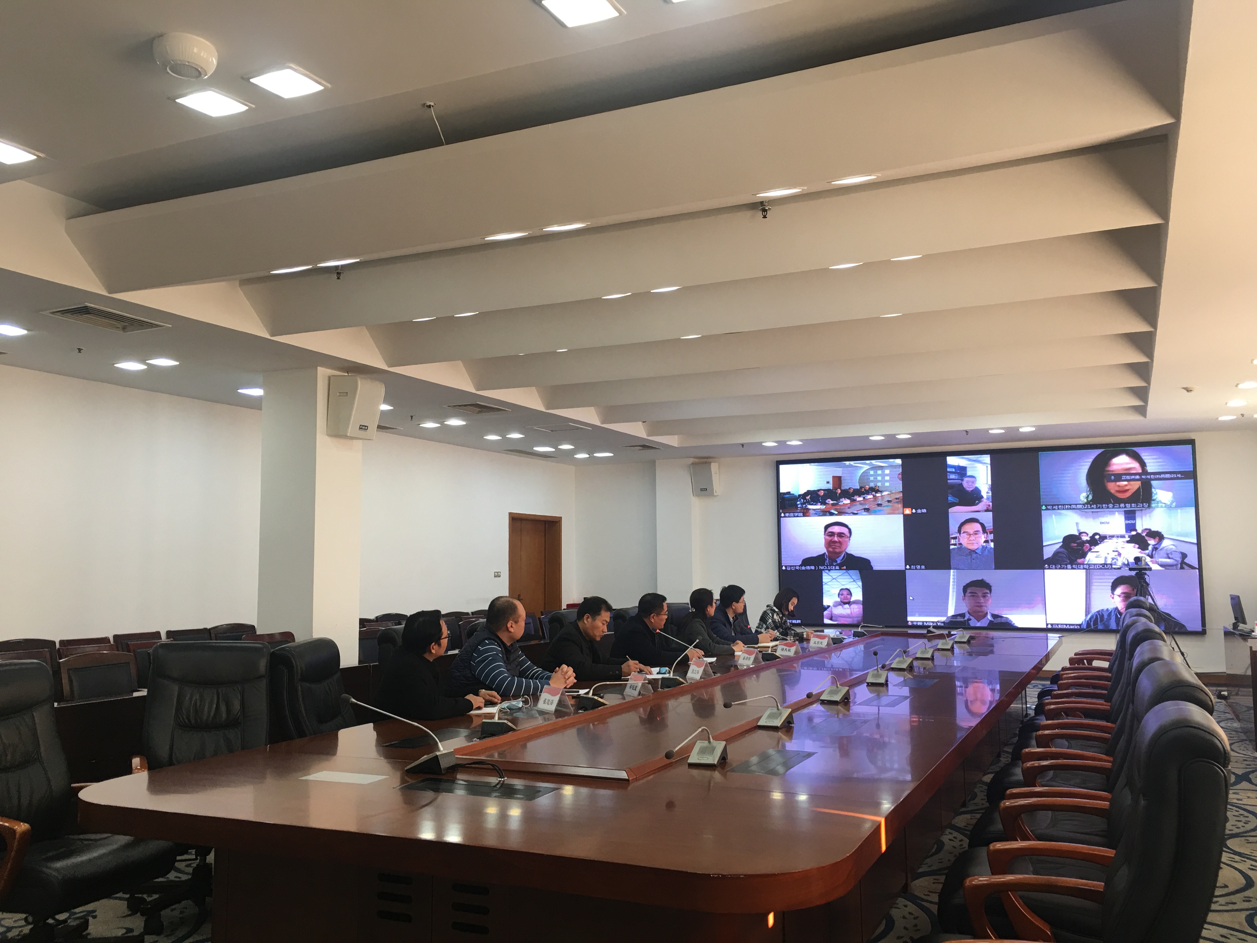 1月12日下午,国际教育学院与韩国大邱加图立大学在综合楼三楼会议室召开视频会议,就两校间的交流合作进行座谈沟通。韩国21世纪韩中交流协会、中国教育国际交流协会、北京留学服务行业协会、我校国际交流处、食品科学与制药工程学院、国际教育学院等单位和部门负责人及相关教师参加了此次视频会议。