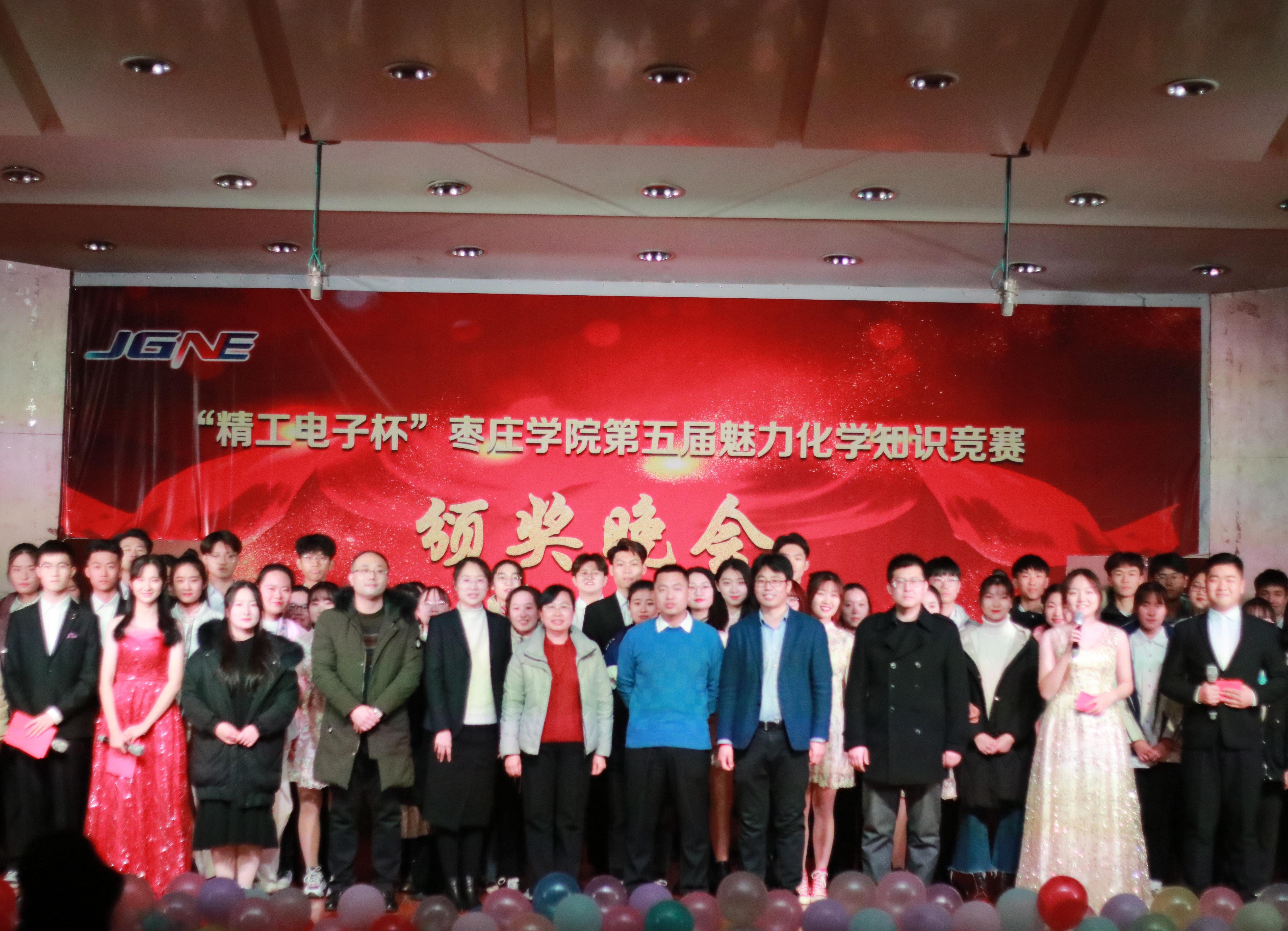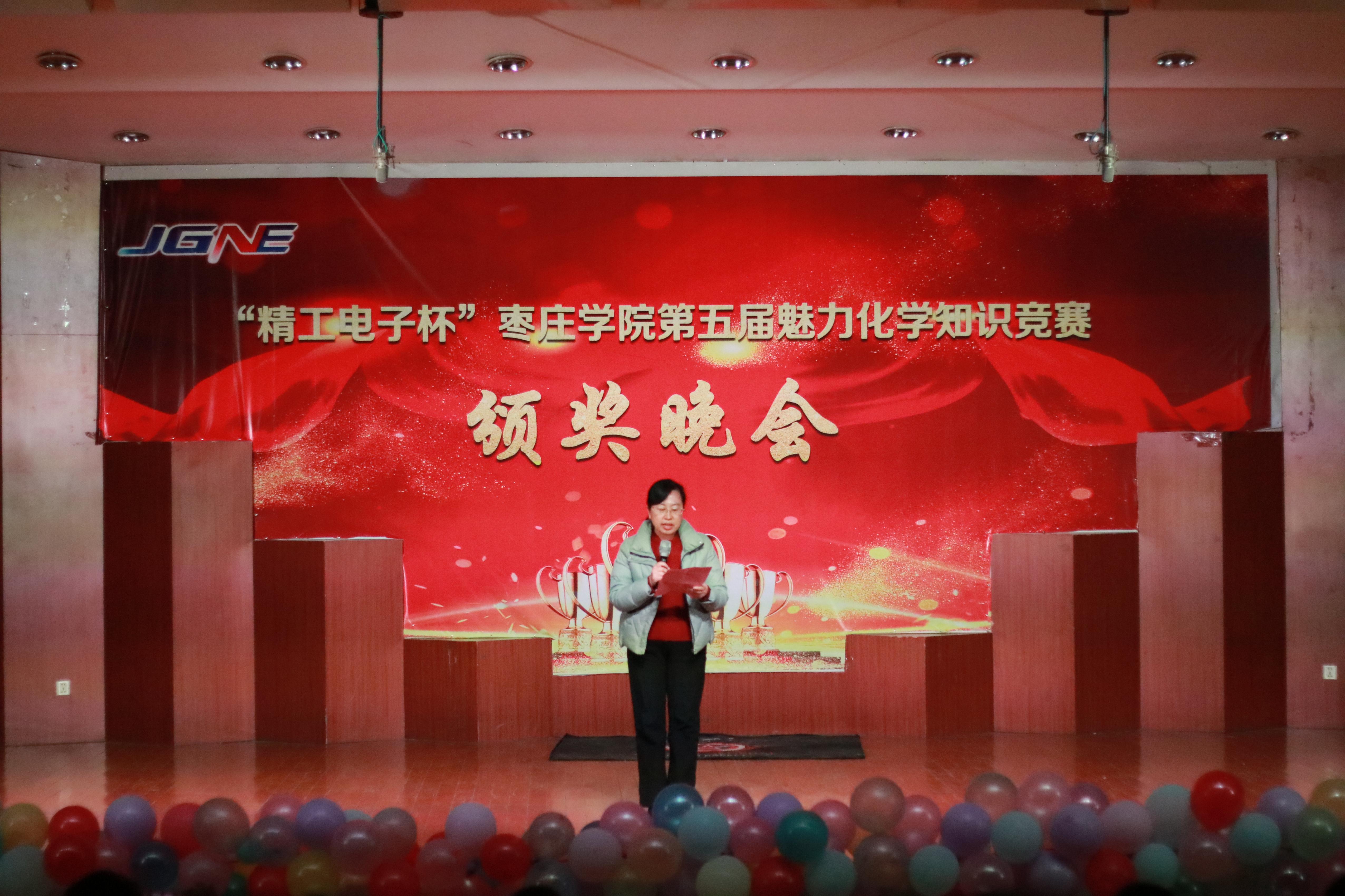 12月7日晚,由化学化工与材料科学学院承办的“精工电子杯”DB中国旗舰官方网站第五届魅力化学知识竞赛颁奖晚会在音乐楼报告厅隆重举行。院长刘春丽、副处级组织员李鑫、副院长丛兴顺、辅导员周朋、山东精工电子科技有限公司常务副总经理王勇、公司人力资源部经理陈琳,全校学生代表共计100余人参加。