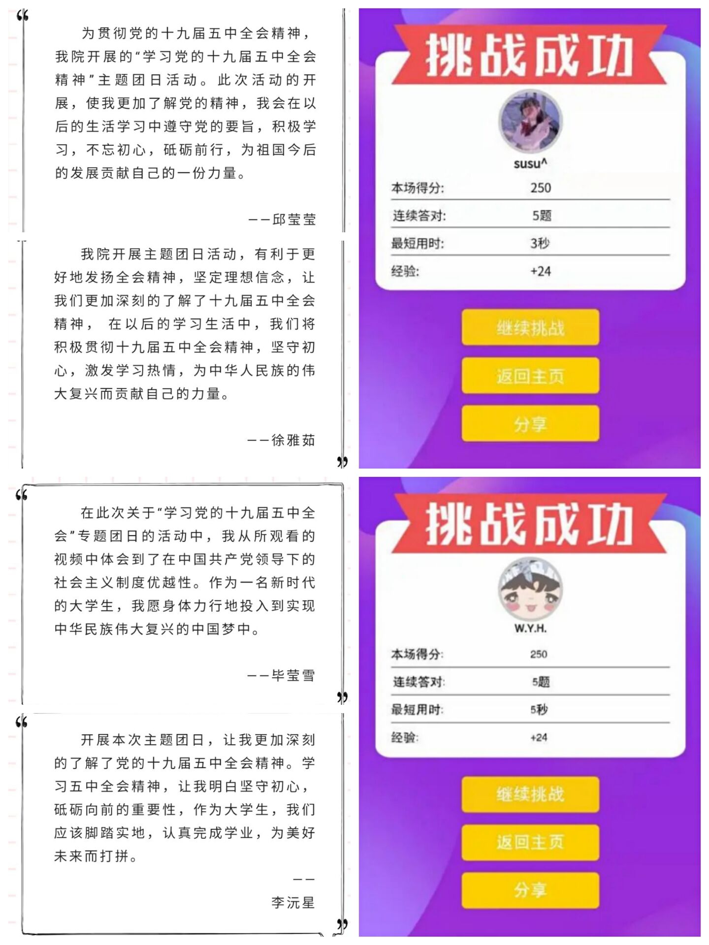 此次主题团日活动,强化了青年学生思想引领,形成了多形式、全覆盖学习党的十九届五中全会精神的新局面。下一步,学院将精心策划,继续推进学习深入,进一步扩大学习效果。