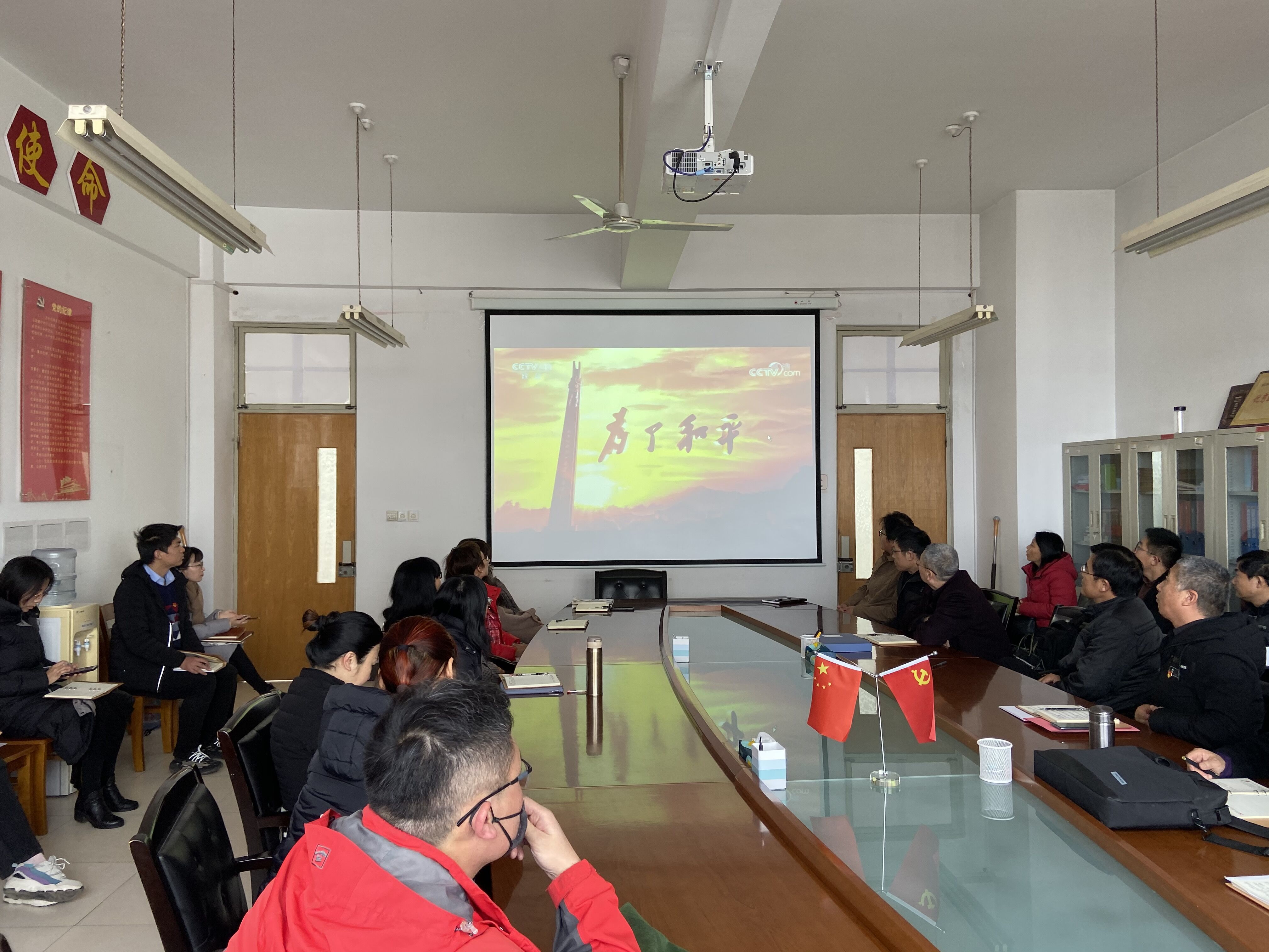 12月2日下午,旅游与资源环境学院组织全体教师在2514会议室观看大型电视纪录片《为了和平》。