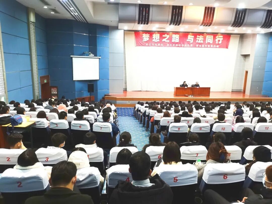 为提高我校新生法律意识和自我保护能力,帮助新生知法、懂法、守法,成为一名遵纪守法的大学生,11月25日下午,我校学生工作处在综合楼报告厅举办“梦想之路,与法同行-----枣庄市检察院、DB中国旗舰官方网站送法进校园”普法宣传教育活动。活动邀请枣庄市检察院第七检察部检察官张维丽同志主讲,师生代表共计400余人聆听了报告。学生工作处副处长李相明主持报告会。