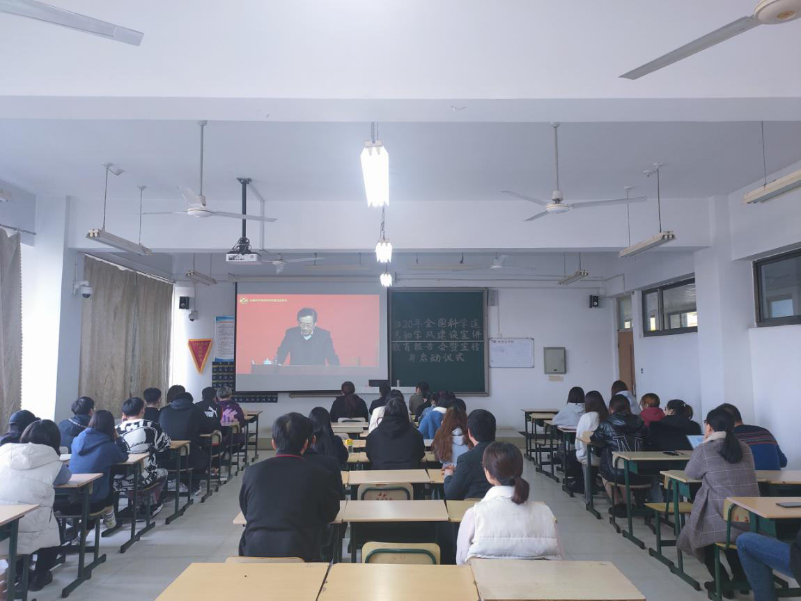 为学习贯彻习近平总书记关于科学道德和学风建设的重要指示精神,进一步加强我院科学道德和学风建设工作,11月20日下午,机电工程学院在理工楼2420教室组织师生学习收看2020年全国科学道德和学风建设宣讲教育报告会暨宣传月启动仪式直播。学院党政班子全体成员及师生代表集体收看了大会直播。