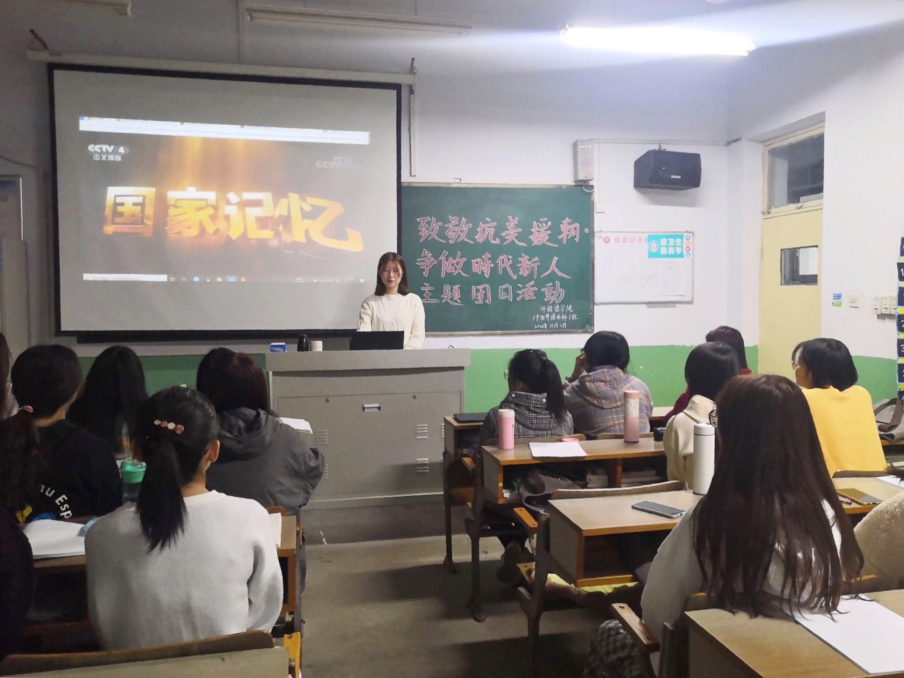 为纪念中国人民志愿军抗美援朝出国作战70周年,引导广大团员青年铭记革命先烈,弘扬伟大的抗美援朝精神,根据学校工作安排,11月1日-3日,外国语学院团总支组织各团支部开展“致敬抗美援朝·争做时代新人”主题团日活动,此次活动由各班团支书主持。