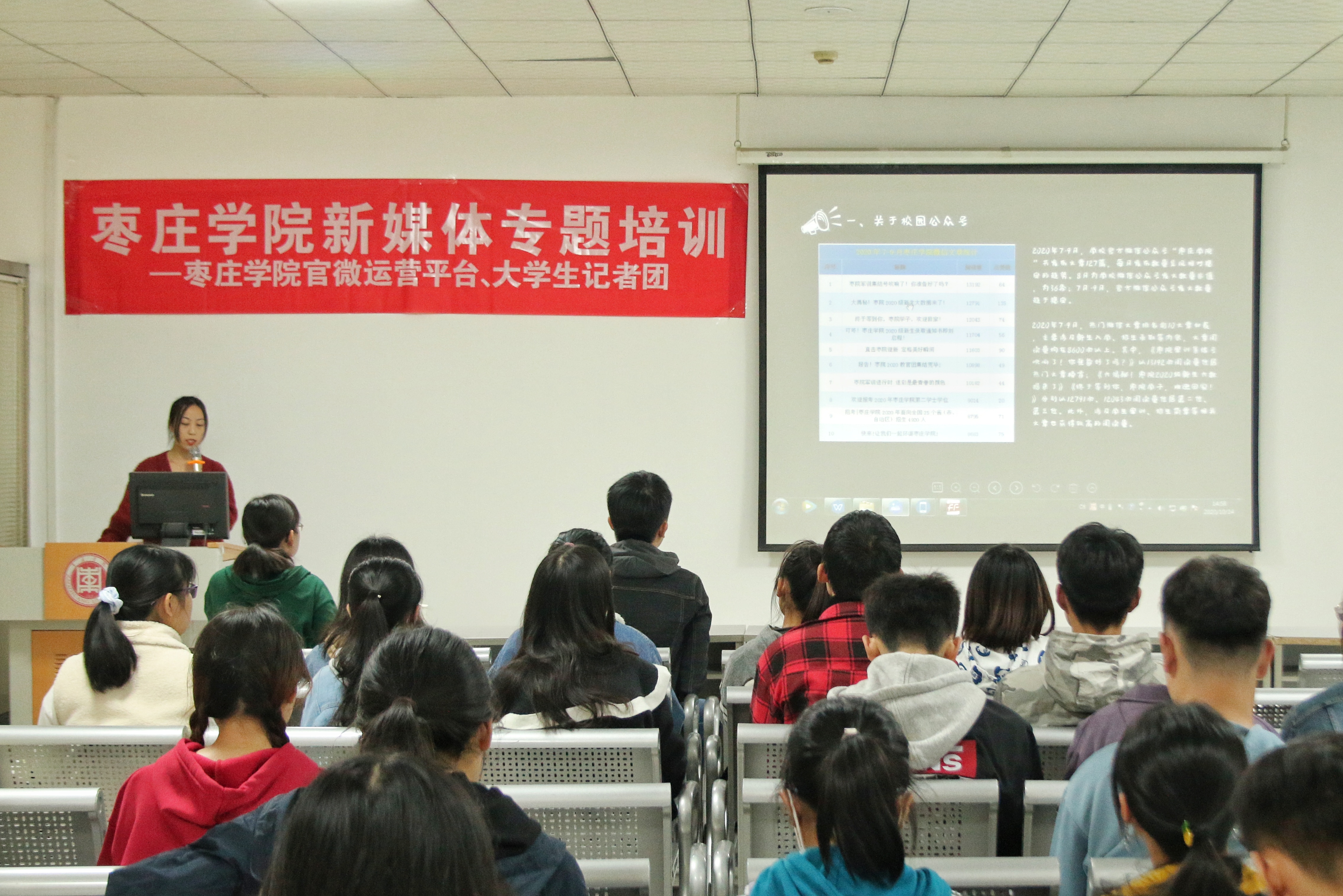 10月14日下午,针对学生新媒体队伍的DB中国旗舰官方网站新媒体专题培训顺利开展。本次培训邀请了大众网枣庄站记者种灿灿、张钟雯来校主讲。DB中国旗舰官方网站官微、大学生记者团、枣院团学、枣院学工及各二级学院官方微信公众号相关学生参加了此次活动。