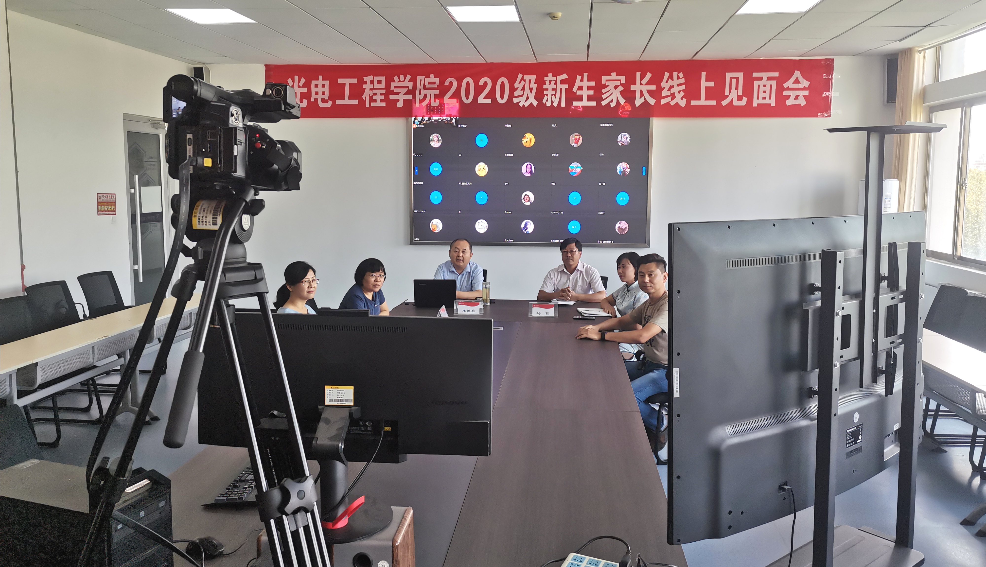 马伟向新生家长们表示热烈祝贺,同时请家长们放心,在学校和学院的精心培养下,学生一定能成为对国家、对社会有用之才。韦德泉向新生家长介绍了光电工程学院的基本情况,就学院人才培养方案、课程设置、师资配备等,向家长们做了介绍和讲解。会上,院领导和新生家长共同观看光电工程学院专题片,各专业负责人在线并一一解答学生和家长的提问。